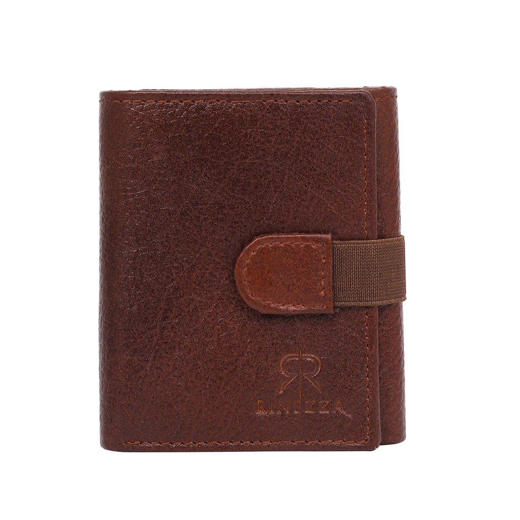 Rinezza Genuine Leather Tri Fold Wallet for Men & Women | with Elastic Closure and Zippered Coin Pocket | RFID Protected ATM/Credit Card Holder Wallet
