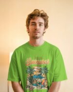 Embrace sunny vibes in style with our Hello Summer unisex graphic T-shirt, designed for both men and women. Crafted from soft, breathable cotton fabric, this vibrant green tee features a bold tropical print with palm trees, ocean waves, and a chilled-out pineapple character – the perfect symbol of relaxation. Its lightweight feel and relaxed fit make it ideal for beach trips, casual outings, or laid-back weekends. Whether you pair it with shorts, jeans, or joggers, this T-shirt adds a burst of summer energy to your wardrobe.