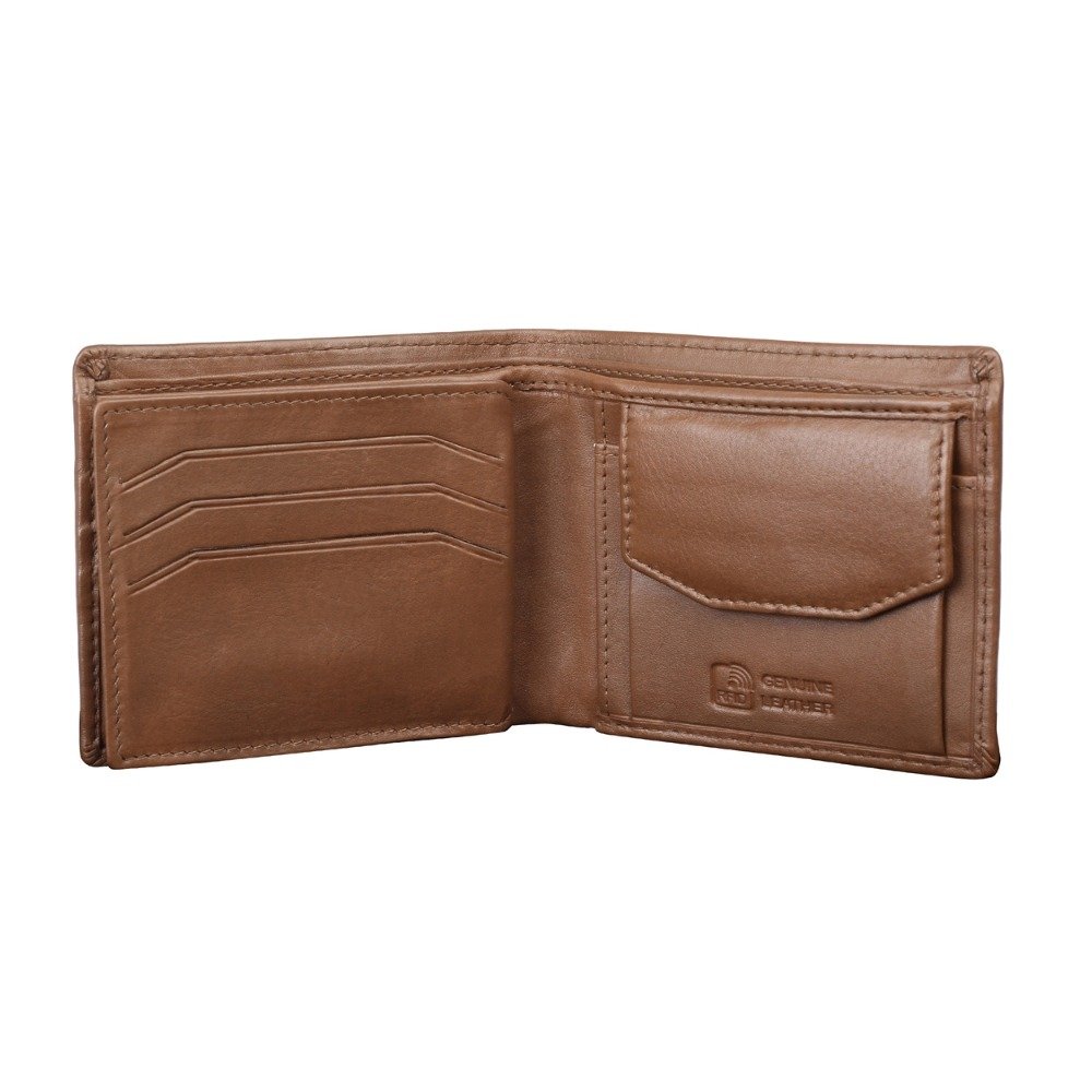 Discover sophistication and functionality with this Rinezza genuine leather bifold wallet for men. Crafted with premium leather, this wallet features multiple card slots and a spacious currency compartment to keep your essentials organised. The thoughtfully designed interior includes dedicated spaces for cards and banknotes, while the RFID protection technology safeguards your sensitive card information from unauthorised scanning. The classic tan colour and elegant stitching detail showcase superior craftsmanship, while the embossed Rinezza logo adds a touch of luxury. Perfect for daily use, this wallet maintains a slim profile despite its generous storage capacity. The durable construction ensures it will maintain its shape and functionality through regular use. Whether for yourself or as a gift, this wallet combines traditional style with modern security features for the discerning gentleman.