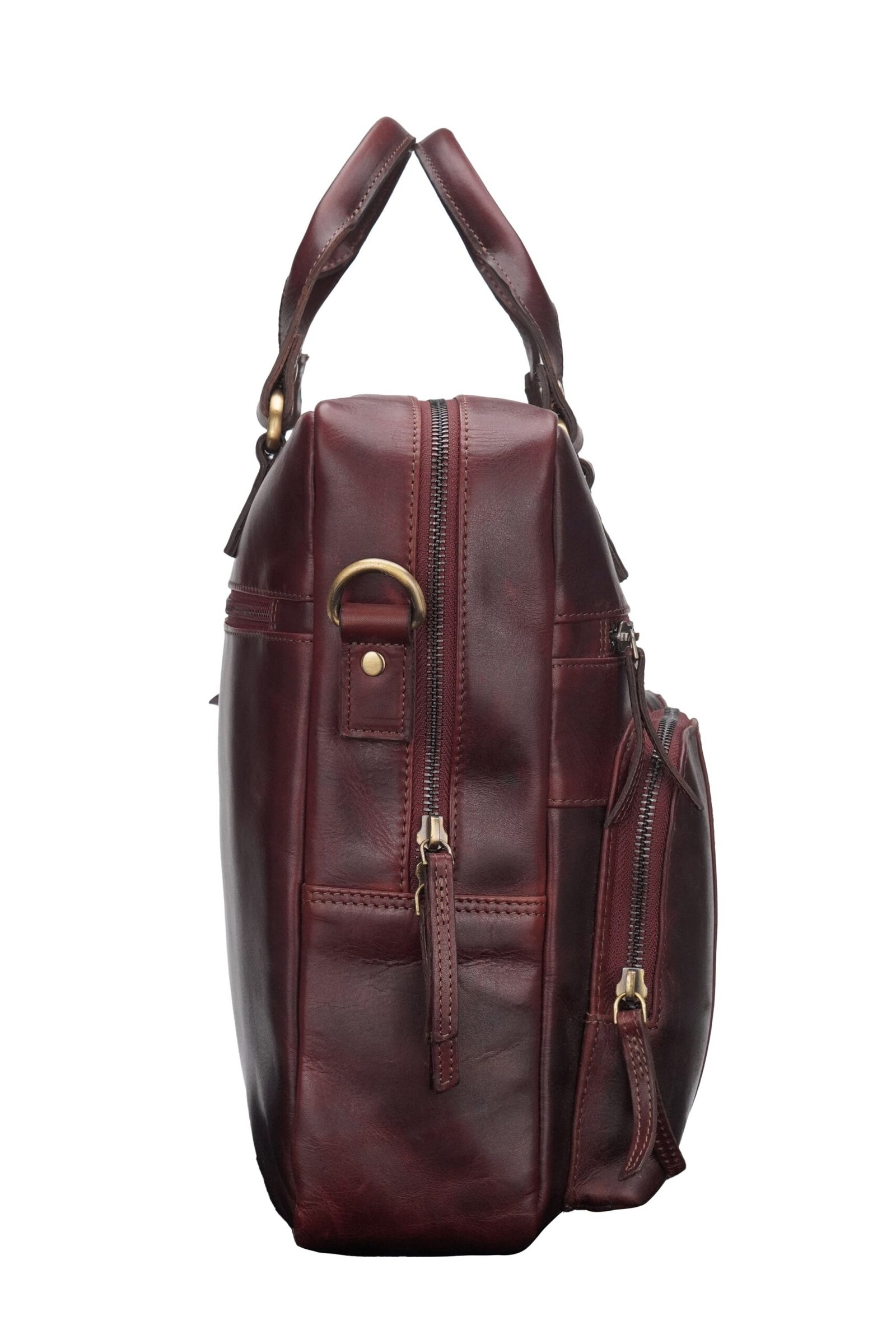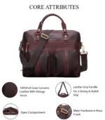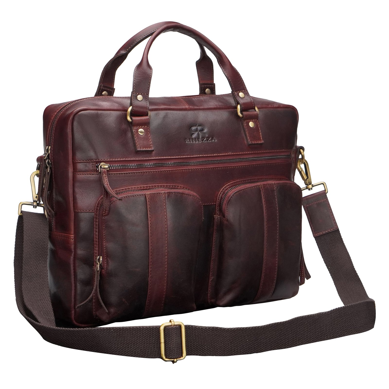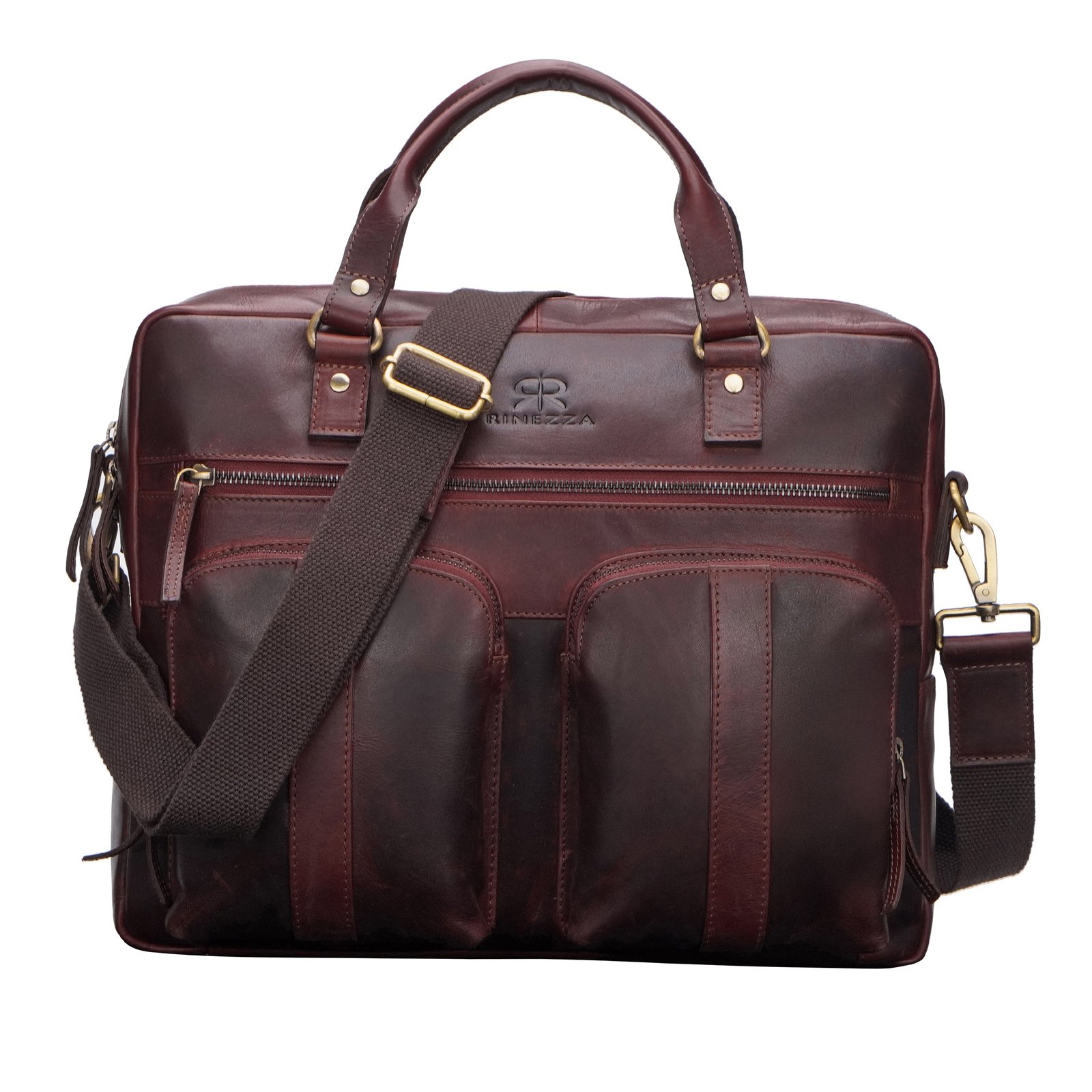 Rinezza Genuine Leather Laptop Bag for Men | Brown Oil Pull Up | Multiple Pockets | Adjustable Shoulder Strap