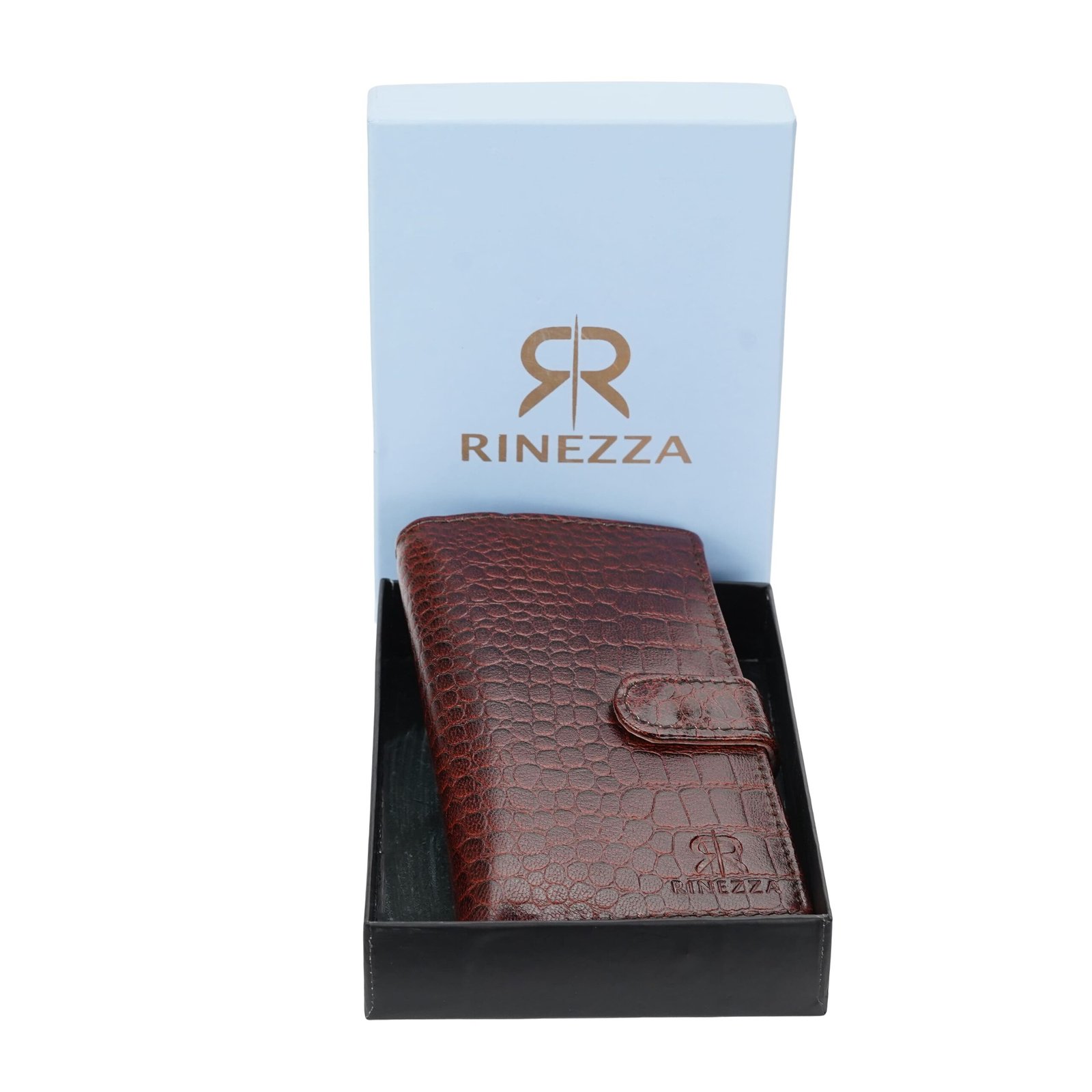 - Elevate your everyday carry with this sophisticated Rinezza genuine leather long wallet featuring a distinctive Croco texture.