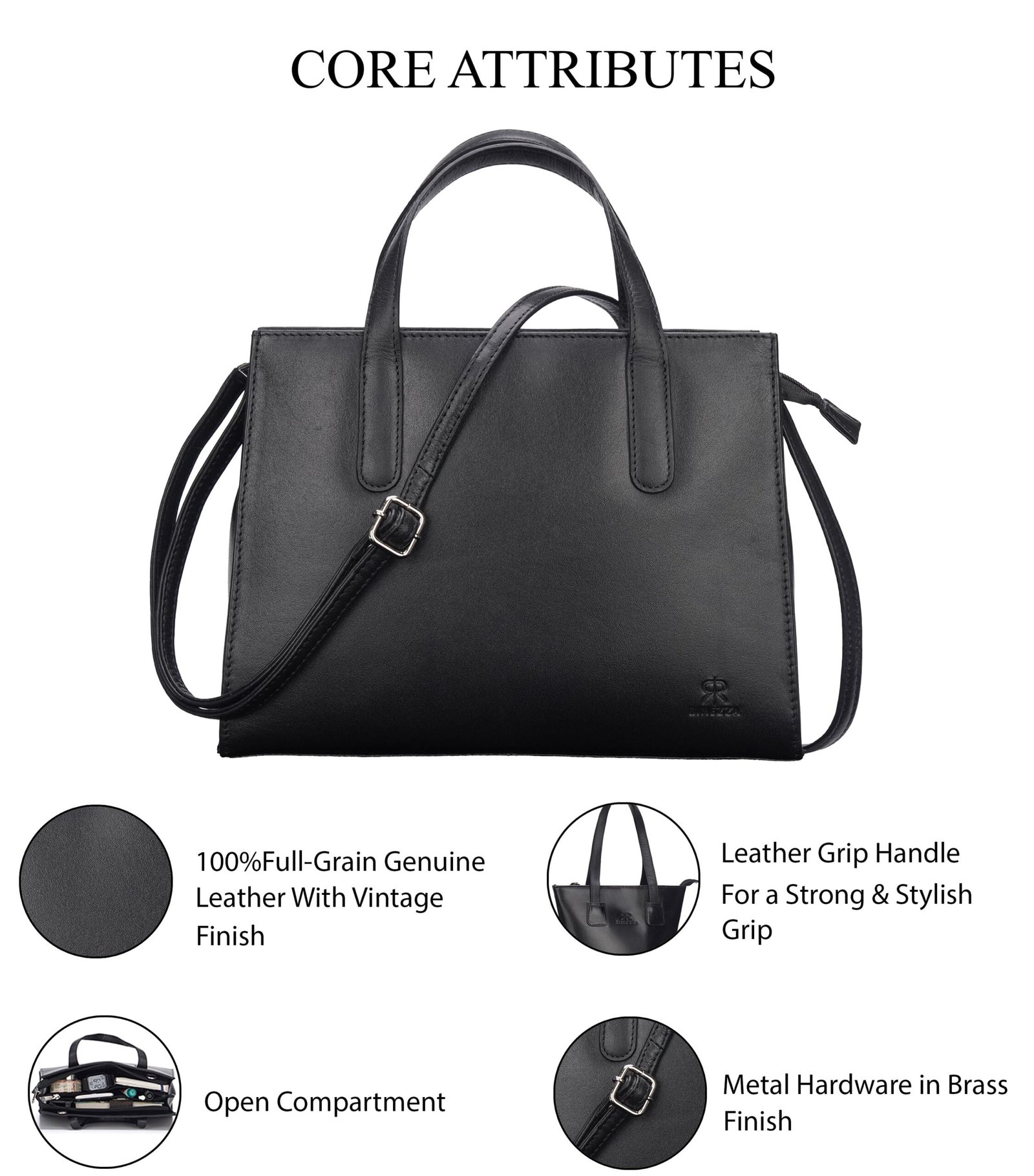 Rinezza Genuine Leather Satchel Handbag for Women, Satchel Bag for Work, Ladies Purse, Stylish Shoulder Bag, Black