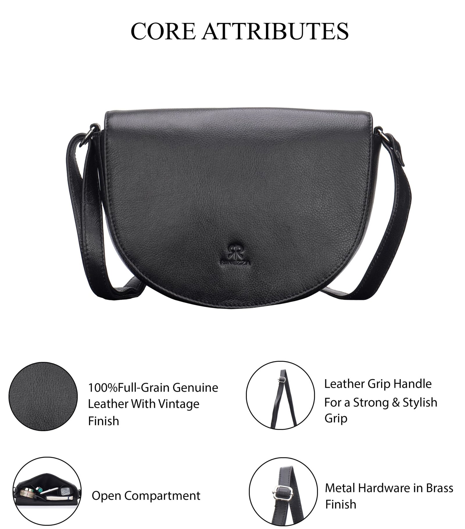 RINEZZA Genuine Leather Sling Bag With Magnetic Button Closure, Adjustable Shoulder Strap, Trendy Crossbody Bag For Girls, Trendy Women’s Handbags, Black