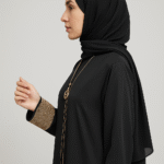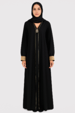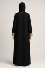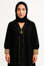 Be the first to review “Rinezza Modern Abaya with Gold Accents | Long Abaya | Embellished Cuffs | Decorative Pendant | with Black Plain Dupatta” Cancel reply