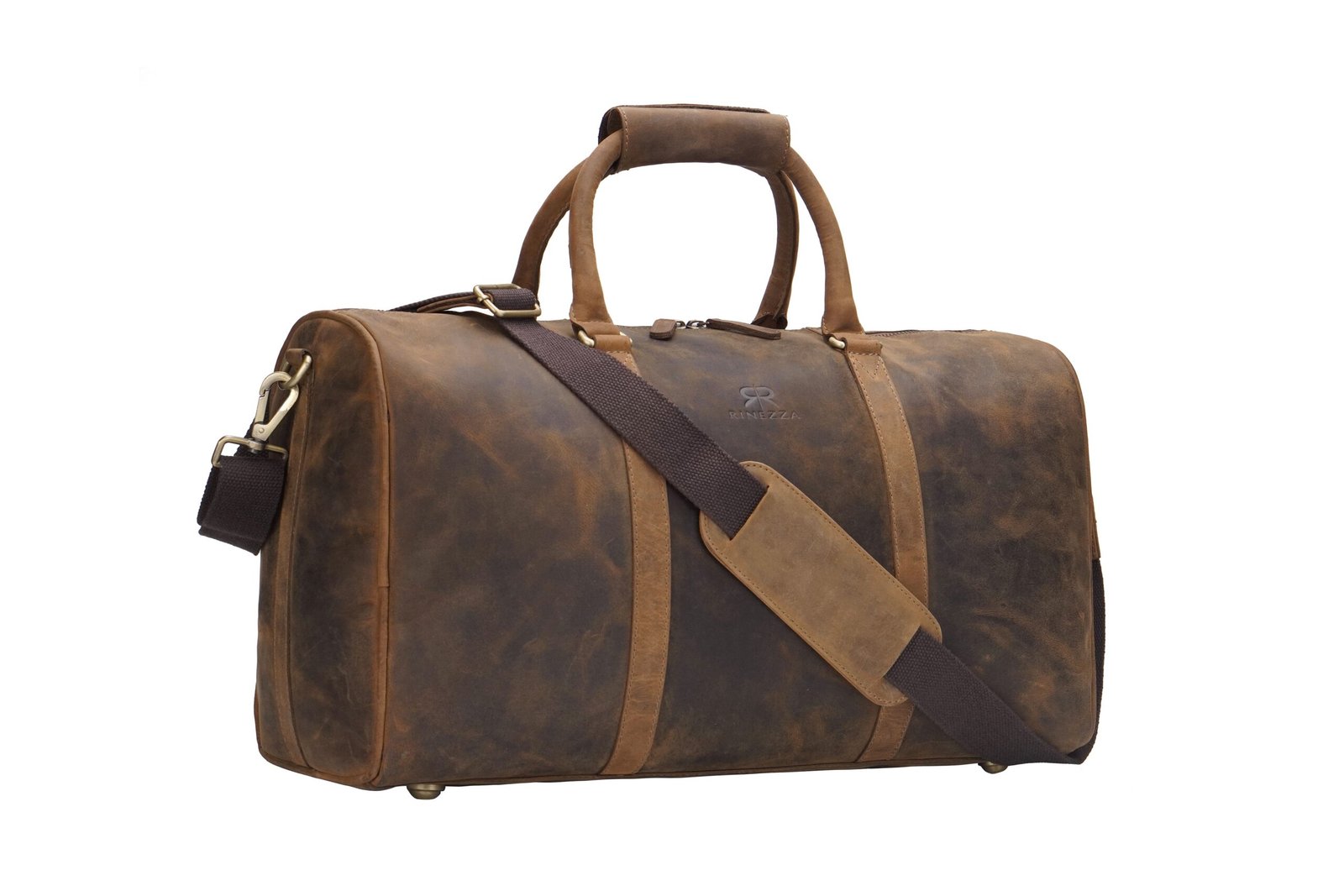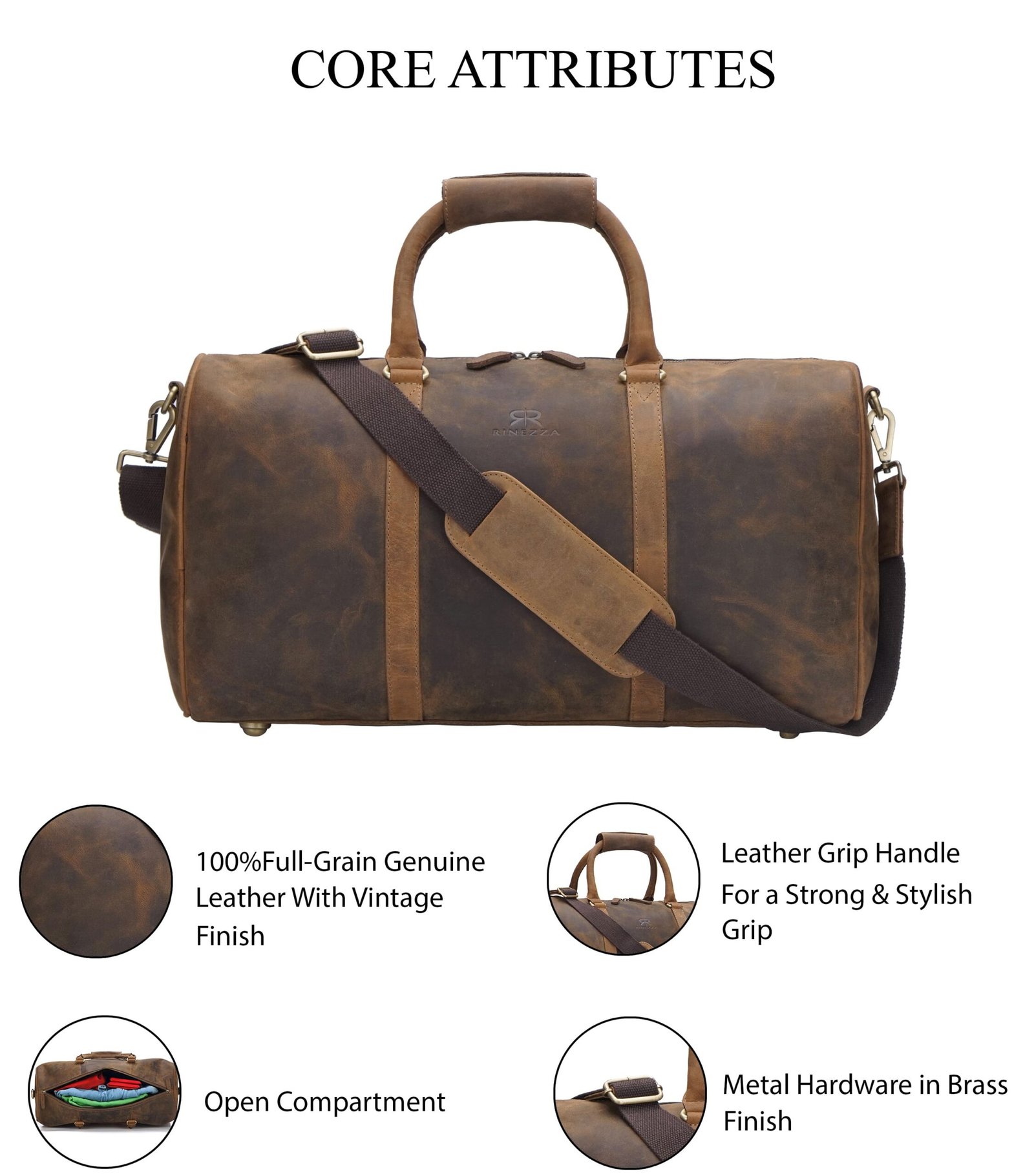 Rinezza Vintage Leather Duffle Bag, Rustic Dark Brown, Travel Weekender Bag with Shoulder Strap, Stylish Duffle for Gym, Business & Adventure