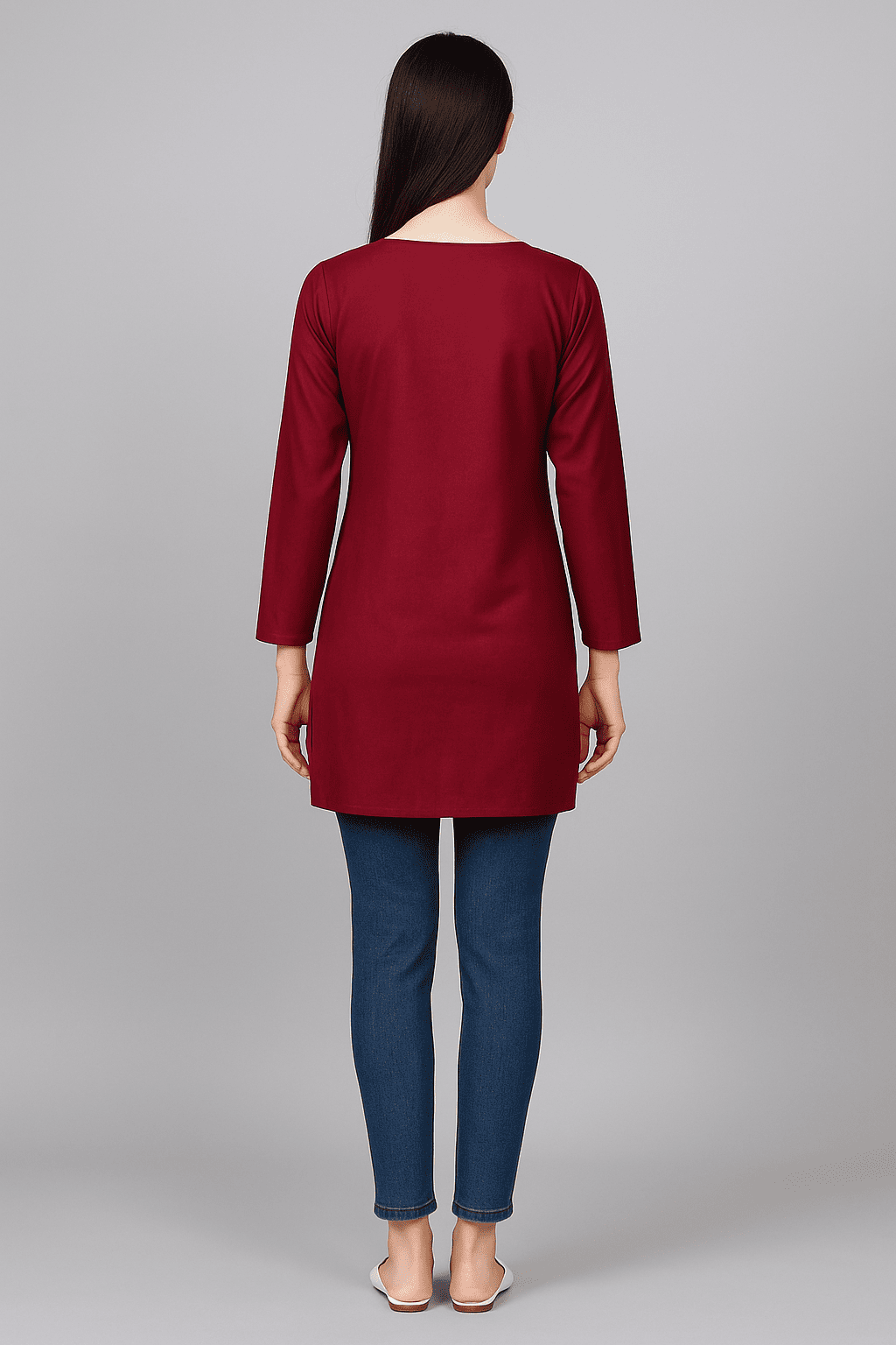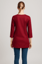 • Style: Classic straight-cut silhouette with a notched round neckline and 3/4 sleeves for contemporary ethnic wear