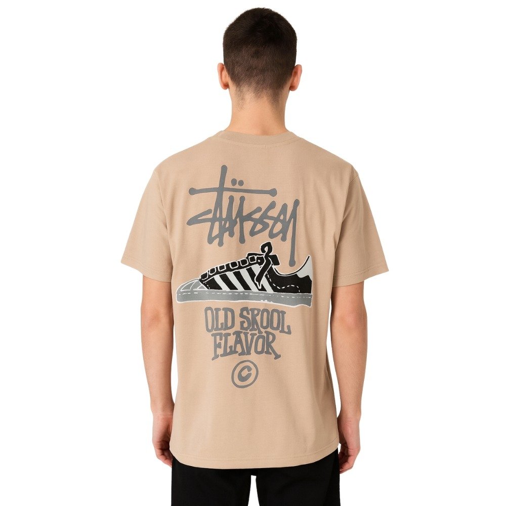 Upgrade your streetwear style with the Stüssy Old Skool Flavor Graphic T-Shirt for men in beige. Designed with premium 100% cotton fabric, this casual tee offers all-day comfort and durability. Featuring a minimal sneaker chest print on the front and a bold graffiti-style Stüssy logo with Old Skool Flavor artwork on the back, it’s the perfect blend of vintage vibe and modern street culture.